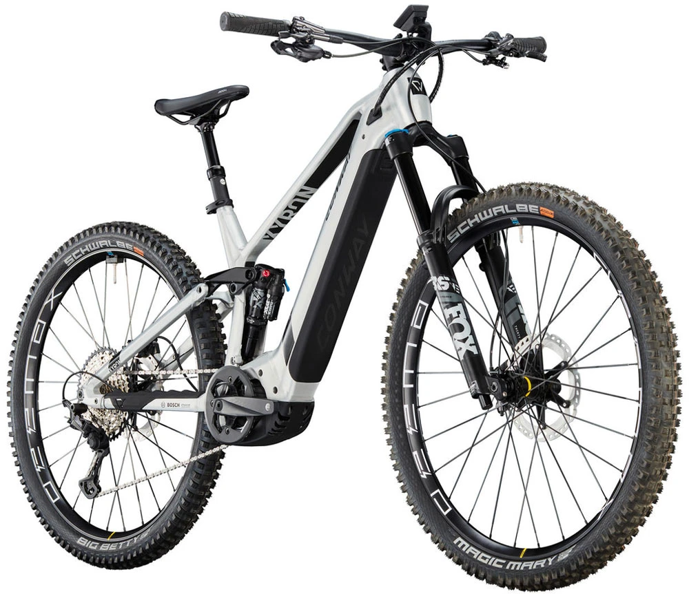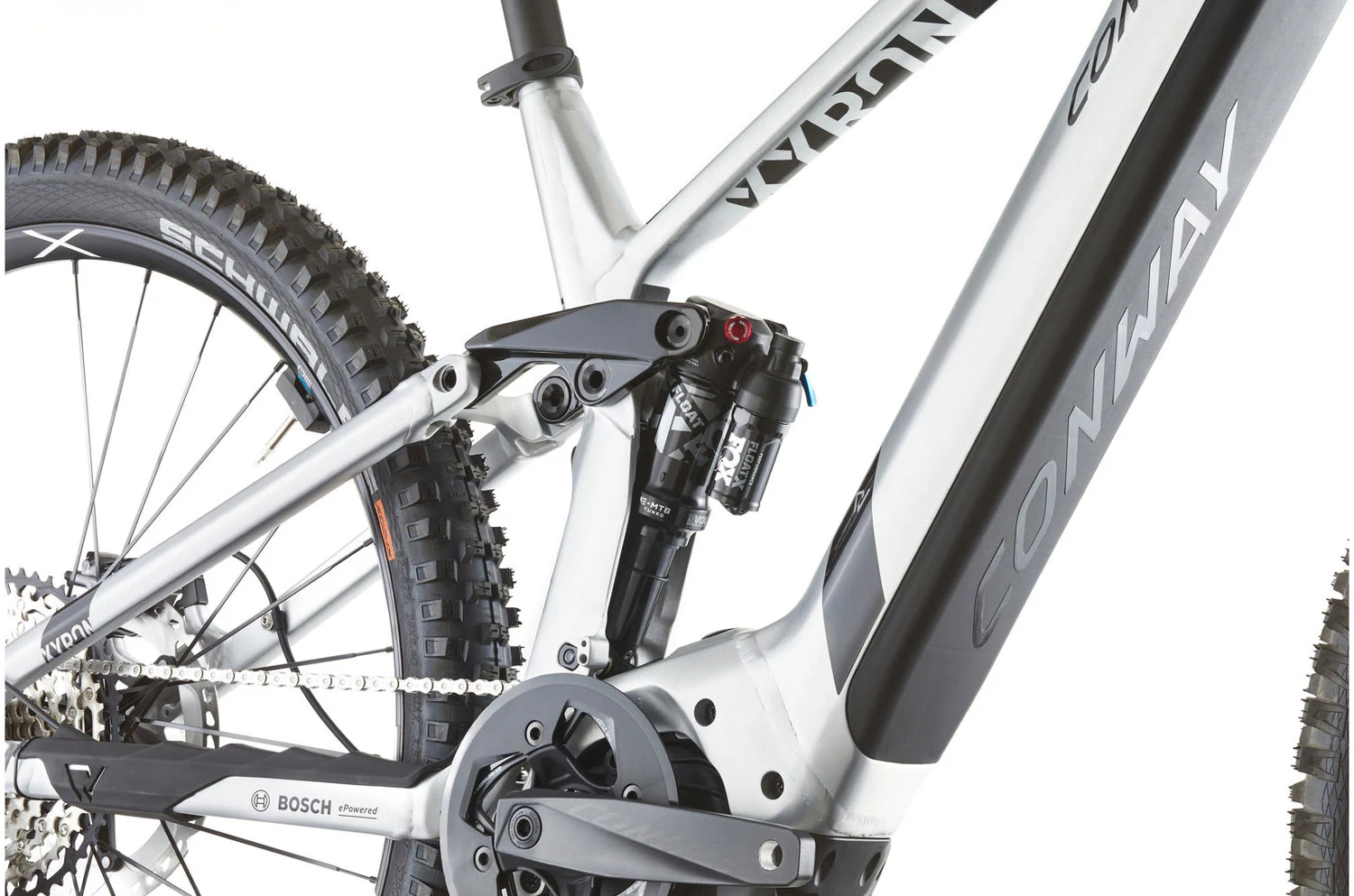 Das Conway Xyron S 5.9 ist das perfekte Einsteiger E-MTB. In Sachen Performance muss man beim aber keine Abstriche machen. Es überzeugt mit einem leistungsstarken Bosch Performance CX Gen 4 Motor. Der 750 Wh große Akku versorgt dich zuverlässig mit dem nötigen Strom, damit du noch länger die Zeit auf deinem Bike genießen kannst.