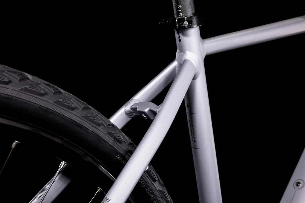 Je leichter ein Bike, desto besser sein Fahrverhalten. Deshalb besteht der Nature Allroad Rahmen auch aus doppelt konfizierten Aluminiumrohren, was sein Gewicht niedrig hält, ohne dass Belastbarkeit und Langlebigkeit verloren gehen. Er bietet zudem genügend Reifenfreiheit für bis zu 50 mm breite Reifen und damit mehr Fahrkomfort sowie ein konisches Steuerrohr für 1a-Lenkpräzision. Wir finden außerdem, dass ein Bike genauso gut aussehen sollte, wie es sich fährt. Somit unterstreichen neben den im Smooth Welding Verfahren konstruierten Hauptgelenken elegante Montagepunkte für das mitgelieferte Zubehör den anmutigen Look. Und dass das Chassis – wie alle unsere Rahmen übrigens – unsere strengen hauseigenen Sicherheitstests mit Bravour bestanden hat, versteht sich von selbst. Damit fährt es sich gleich noch entspannter. Und länger!