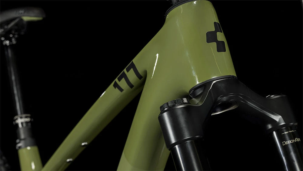 Ein perfektes Produkt noch besser machen – geht das? Nun, mit dem neuen Stereo ONE77 C:68X Rahmen ist CUBE das gelungen! Zu allererst sei sein Gewicht erwähnt: lächerliche 2.3 kg. Der Unterschied wird bei Kletter- und Downhill-Passagen mehr als deutlich. Dazu gibt’s einen Flip-Chip und zwei Montagepunkte für wahlweise einen Luftfeder- oder Stahldämpfer – so kannst die Federung flexibel an deine individuellen Vorlieben und Anforderungen anpassen. Außerdem wurden dem Bike Lagerschalen spendiert, dank derer sich der Steuerrohrwinkel auf 63.8 und 64.4° einstellen lässt. Und sein geschraubtes Tretlager sorgt für ein Plus an Vielseitigkeit und Stabilität. CUBE hat in diesem Rahmen ganz bewusst keinen Stauraum integriert. Warum? Um das Gewicht gering und die Stabilität hoch zu halten. Aber unten am Unterrohr gibt’s eine Aufnahme für die Montage eines eigenen Trail-Tools. Noch Fragen? Na dann ab auf den Berg, aber schnell!