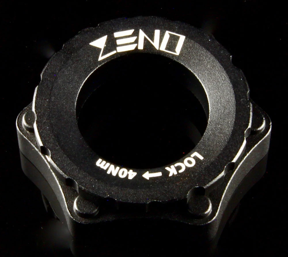 Der CNC-gefertigte und eloxierte ZENO Centerlock-Adapter wurde entwickelt, um eine 6-Loch-Bremsscheibe auf einer Centerlock-Nabe mit 15/20mm Achse montieren zu können.