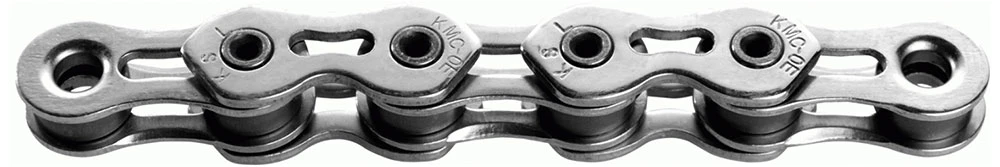 Die K1SL Wide Singlespeedkette von KMC mit vernickelter Oberfläche für BMX, Nabenschaltungssystem und andere Single-Speed-Systeme, die eine direkte Kraftübertragung benötigen.