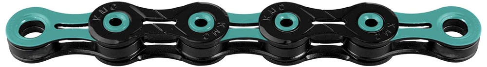 Die super leichte X11 DLC 11-fach Kette von KMC ohne Laufrichtungsabhängigkeit und einer Diamond Like Coating Oberflächenbeschichtung für 11-fach Schaltsysteme.
