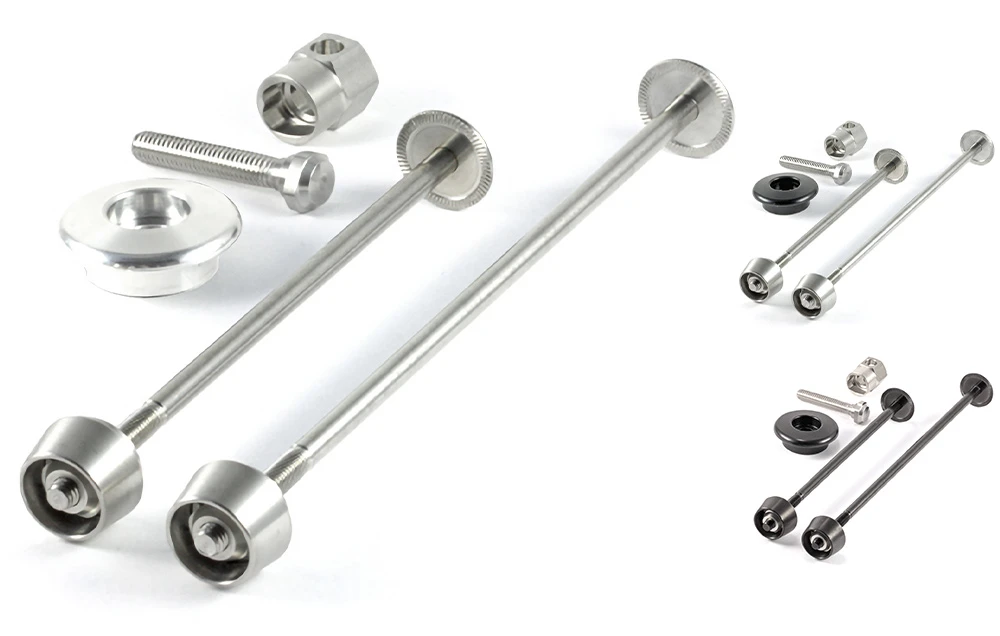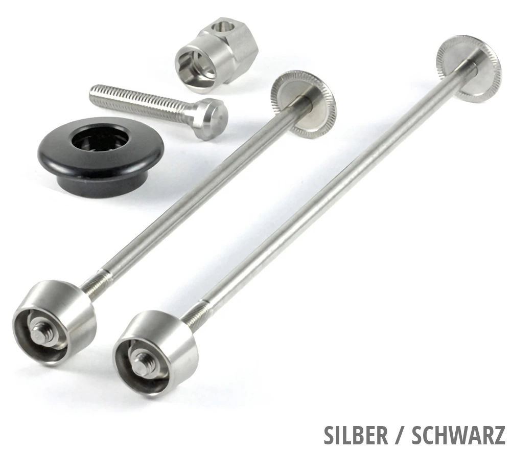 Das Spannachsen-Set 03 / GA von Pitlock aus rostfreiem Edelstahl sichert dank patentierter Lösung deine wertvollen Fahrradkomponenten vor Diebstahl, damit du dich auf wichtigere Sachen im Leben konzentrieren kannst.
