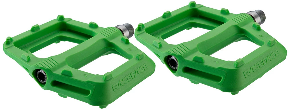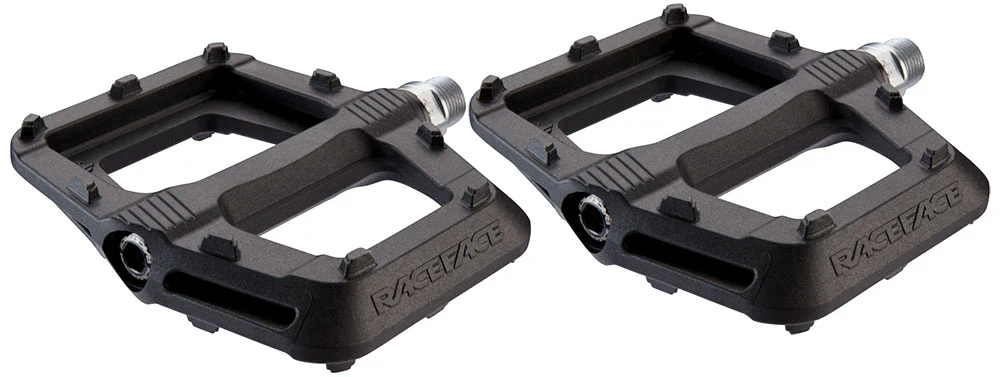 Das Race Face Ride-Pedal verfügt über eine schlanke Nylon-Composite-Plattform und bietet durch das konkave und leichte Design eine perfekte Performance. Geformte Pins geben den nötigen Halt, ohne dass deine Schuhe oder Schienbeine Schaden nehmen.