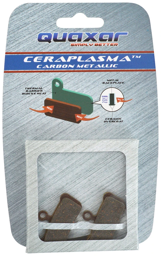 CeraPlasma Disc Pads ist ein patentiertes Verfahren zum Aufsprühen von geschmolzenem oder weichgemachtem Keramikmaterial auf eine Metallrückwand, um eine thermische Barriere oder eine Isolierung zu schaffen, die die Wärme vor der Übertragung auf die Bremssattel-Komponenten verteilt. Es wurde eine Keramikschicht hinzugefügt, die den Korrosionsschutz gewährleistet.