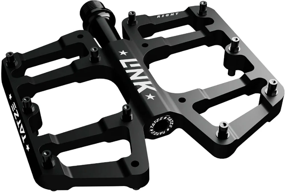 Das LINK-Pedal ist ein extrem dünnes Flat-Pedal. Die große Plattform mit 112 cm2 (113 x 99 mm/LxB) und 40 TATZE PINs mit gezielter Überhöhung sorgen für enormen Grip und eine gute Verbindung zwischen Pedal und Schuh.
